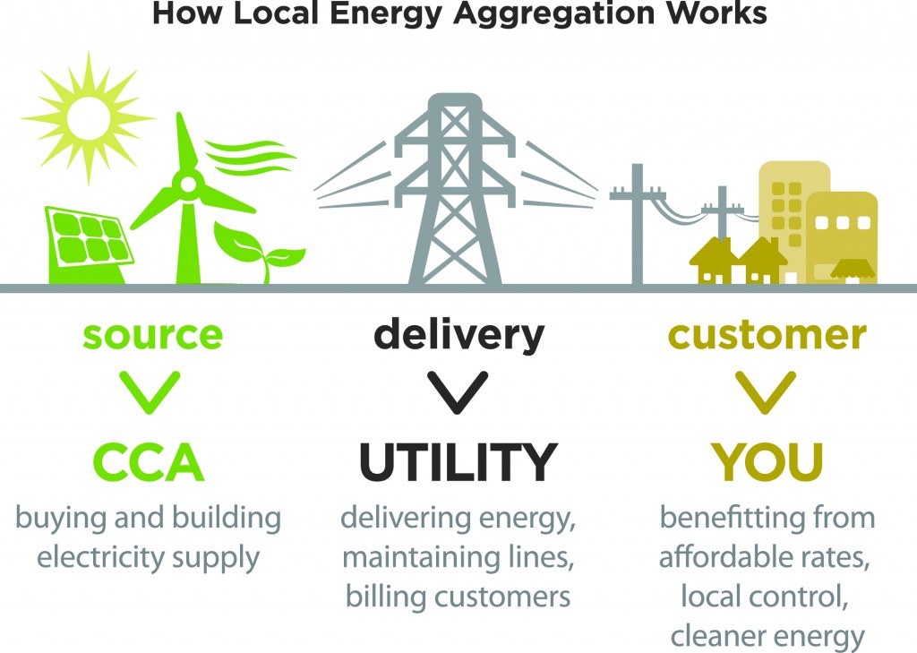 In California, Community Choice Aggregation (often called Community Choice Energy for simplicity) allows local government jurisdictions to set up a not-for-profit agency to procure electricity on behalf of its residents, businesses, and municipal governments. The promise of Community Choice Energy is the delivery of electricity that has a higher renewable energy content, fewer greenhouse gases (GHGs), at a price that meets or beats the local investor owned utitliy. Community Choice Energy (CCE) can also encourage the development of more local, renewable energy by purchasing an ever increasing amount of electrcity from sources closer to where the electricity is consumed. It is also possible for a CCE to own its own generation resources- thus reducing its reliance on energy markets.